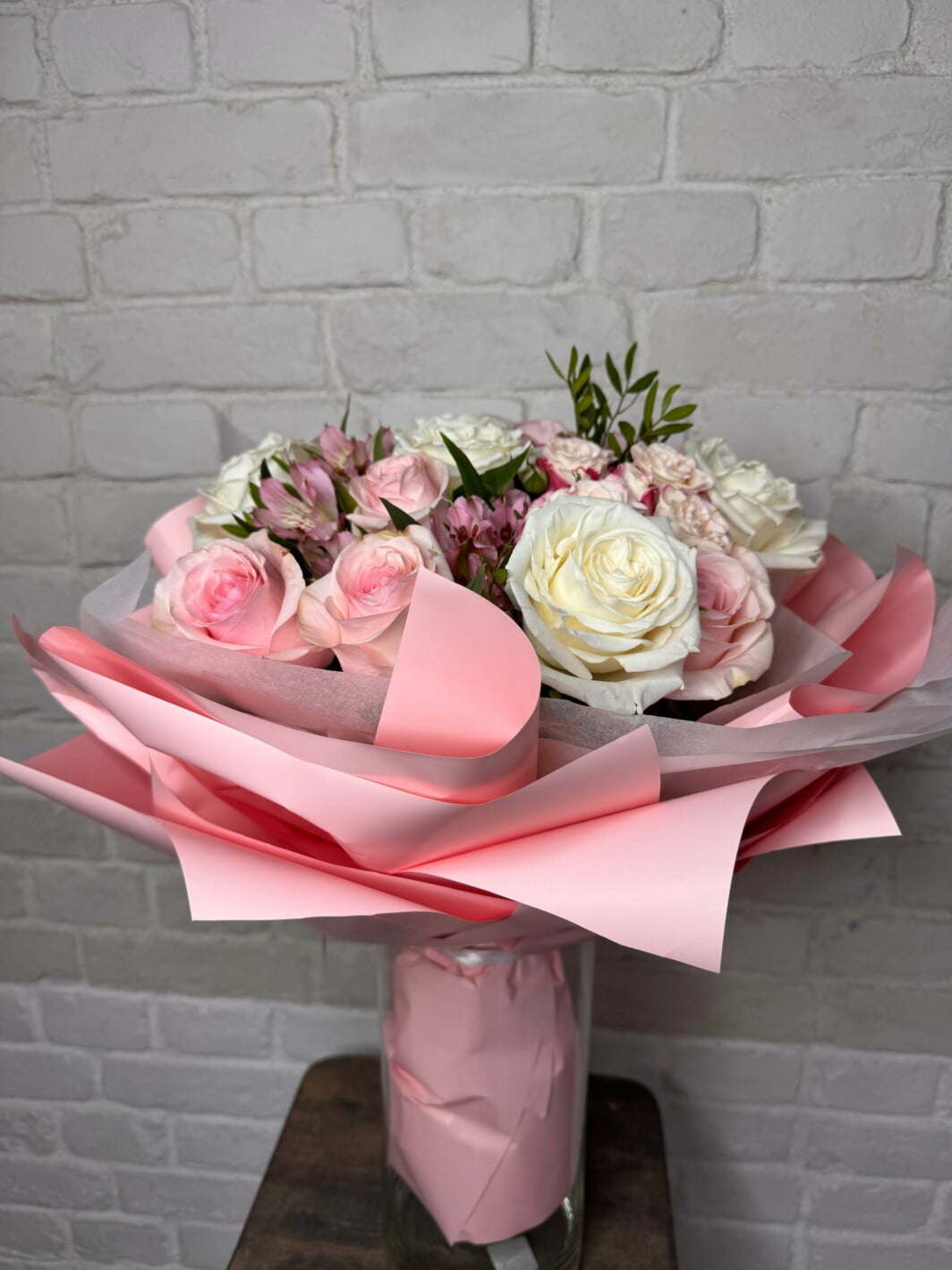 Все наши букеты уникальны. Некоторые цветы и материалы являются сезонными и могут быть недоступны в данный момент, поэтому мы оставляем за собой авторское право определять конечный состав букета. Но обещаем, что букет останется таким же стильным и неповторимым.